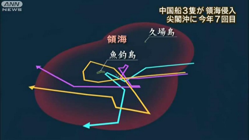 報(bào)道稱, 18日上午8時(shí)54分至9時(shí)17分,中國(guó)3艘海監(jiān)船相繼進(jìn)入釣魚島附近的“日本領(lǐng)海”,日本海上保安廳巡邏船立即發(fā)出警告。中國(guó)“海監(jiān)50”則通過(guò)無(wú)線電用中文和英語(yǔ)回答稱,釣魚島及其附屬島嶼是中國(guó)領(lǐng)土。共同社稱,3艘中國(guó)船環(huán)繞釣魚島航行約5小時(shí),“海監(jiān)50”最近時(shí)僅距島約1公里。