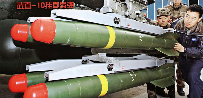 【環(huán)球網(wǎng)綜合報道】近日,一張國產(chǎn)新型直-10武裝直升機裝填彈藥的照片在網(wǎng)絡(luò)上曝光。照片中,一架直-10型武裝直升機的單個掛架上同時掛載了一個副油箱和4枚反坦克導(dǎo)彈。據(jù)悉,該型導(dǎo)彈是我國最新研制的AKD-10型反坦克導(dǎo)彈,該型導(dǎo)彈是專門為武裝直升機研制的空對地型攻擊導(dǎo)彈。有分析稱,AKD-10導(dǎo)彈性能強大,可以快速捕獲和自動跟蹤目標(biāo),打擊精度在3米以內(nèi),可在3000米的距離捕獲目標(biāo),飛行距離在5000米以上。