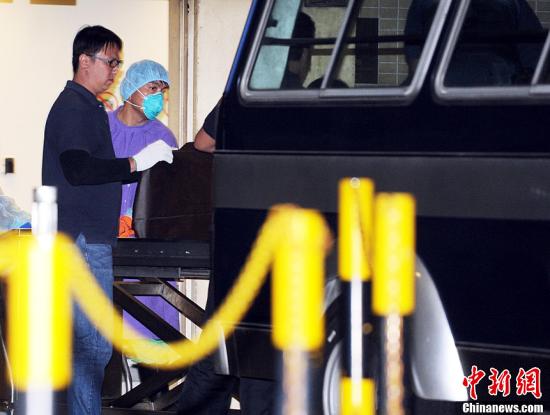 在埃及熱氣球事故中遇難的九名港人遺體,3月11日傍晚運返香港,再由靈車轉送葵涌公眾殮房。中新社發(fā) 譚達明 攝