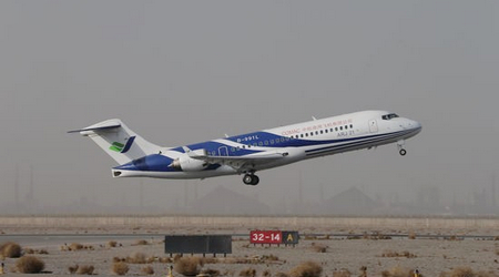 中國經(jīng)濟(jì)網(wǎng)訊 2013年3月31日,ARJ21-700飛機(jī)102架機(jī)進(jìn)行了轉(zhuǎn)場后的首次檢飛。102架機(jī)于上午9時(shí)21分在嘉峪關(guān)機(jī)場起飛,經(jīng)過1小時(shí)46分鐘的飛行,于11時(shí)07分降落,順利完成了檢飛任務(wù)。局方試飛員對飛機(jī)性能和狀態(tài)給予了肯定。