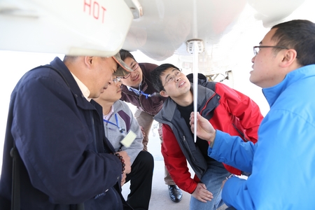 航前,技術人員對天線進行檢查。