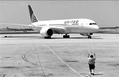 當(dāng)?shù)貢r(shí)間5月20日,美國芝加哥,美國聯(lián)合航空公司旗下一架波音787夢(mèng)想客機(jī)準(zhǔn)備從休斯敦飛抵芝加哥。圖/CFP