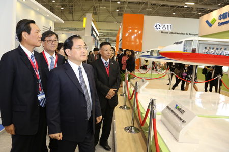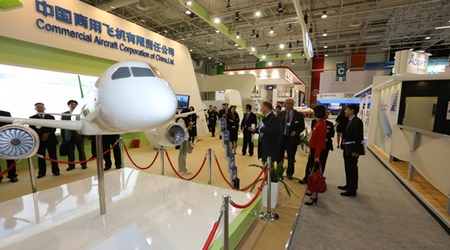 中國(guó)經(jīng)濟(jì)網(wǎng)航空6月18日訊 2013年6月17日,第五十屆巴黎國(guó)際航空航天展覽會(huì)在法國(guó)巴黎開幕,中國(guó)商飛公司攜C919大型客機(jī)模型、ARJ21-700飛機(jī)模型參加本屆航展,全面展示C919大型客機(jī)和ARJ21-700飛機(jī)研制進(jìn)展。董事長(zhǎng)金壯龍率團(tuán)參加本屆航展、副董事長(zhǎng)滕一龍、總會(huì)計(jì)師田民參加航展相關(guān)活動(dòng)。 航展期間,金壯龍、滕一龍和田民等參觀了賽峰集團(tuán)、MOOG公司、中航工業(yè)、愛勵(lì)國(guó)際、CFM公司等參展商展臺(tái),并與各公司管理層就加強(qiáng)合作進(jìn)行了深入的會(huì)談。