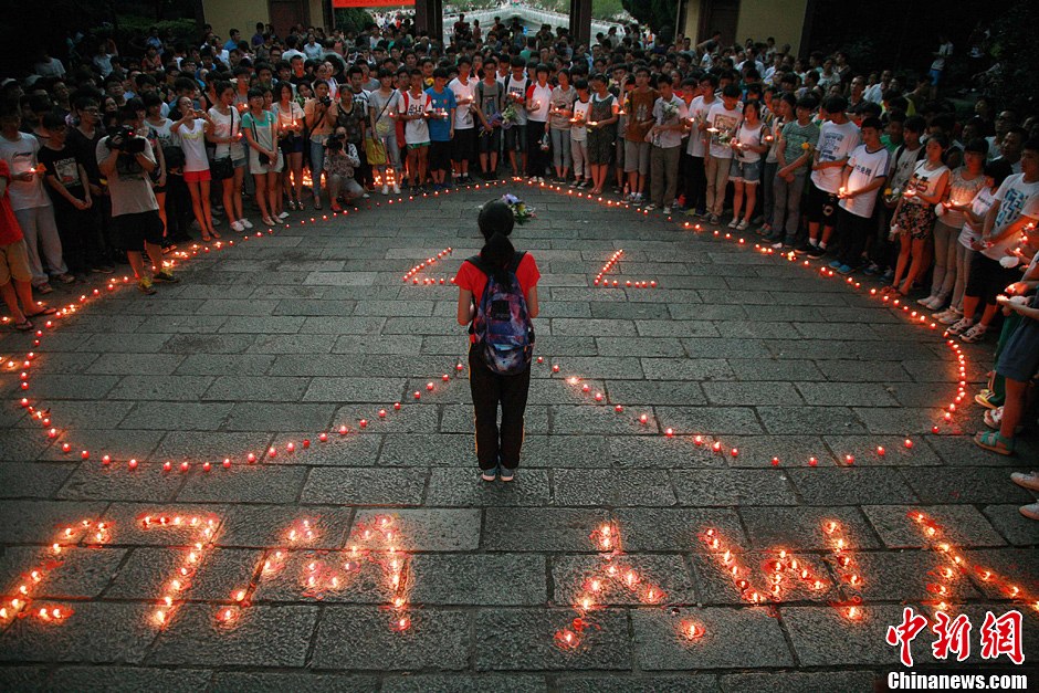 7月8日,市民在江山市須江公園內(nèi)為韓亞空難遇難中國女生默哀祈福。7日凌晨,在美國舊金山國際機場著陸時失事的韓亞航空公司波音777型客機已經(jīng)造成至少2人死亡,韓亞航空向浙江江山市政府發(fā)去傳真,稱根據(jù)登機牌,參加江山中學赴美夏令營的兩名女生王琳佳和葉夢圓在此次空難中不幸罹難。中新社發(fā) 李晨韻 攝