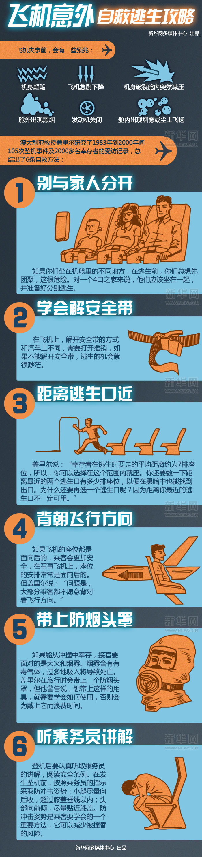 澳大利亞教授蓋里爾研究了1983年到2000年間105次墜機事件、2000多名幸存者的受訪記錄,總結(jié)出6條自救方法。