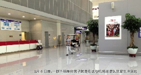 8月6日晚10點半左右,又有一幫不明身份男子,沖進(jìn)新橋機場航站樓,“在里面肆意抽煙、拉客”,態(tài)度囂張,人數(shù)有一二十人之眾。這次遭遇機場治安巡邏隊員勸阻時,對方竟直接動手,毆打巡邏隊員,致使多人受傷。