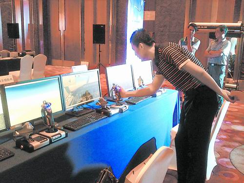 操控系統(tǒng)近年來取得長(zhǎng)足進(jìn)步。圖為觀眾體驗(yàn)無人機(jī)操控
