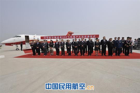 上圖為:漢華航空首架挑戰(zhàn)者300飛機落戶大連儀式現(xiàn)場