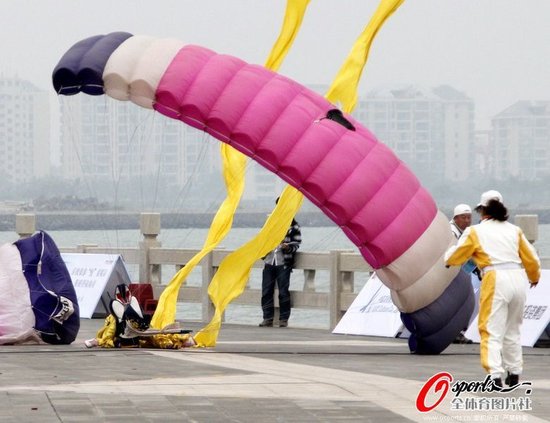 2011年12月17日,2011環(huán)海南飛行拉力賽在海口開幕,80余具航空器將競(jìng)秀?跒。在開幕式上,一名女跳傘運(yùn)動(dòng)員表演落地時(shí)降速太快導(dǎo)致受傷被送醫(yī)院。