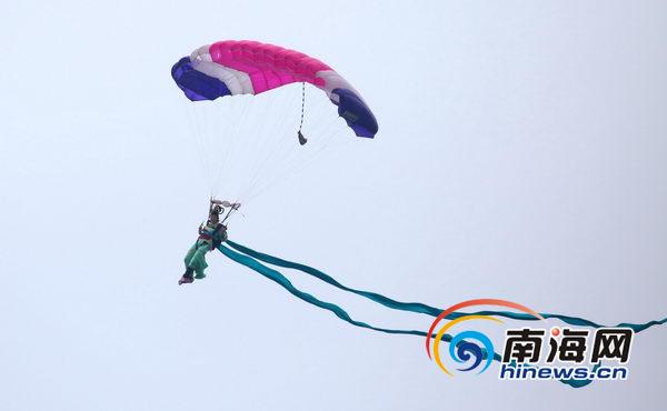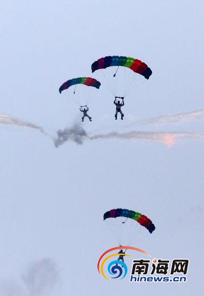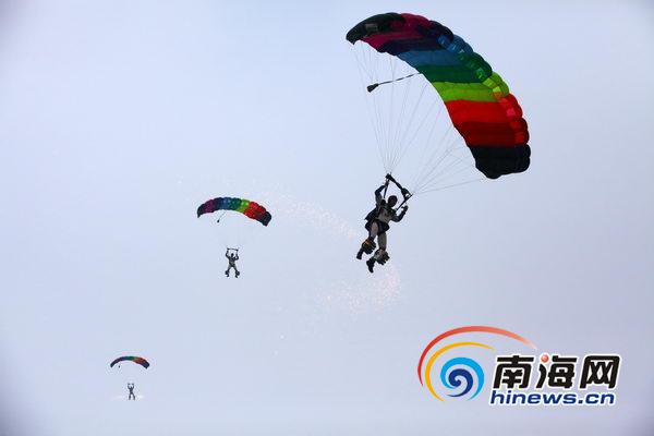 跳傘隊(duì)員們從天而降(南海網(wǎng)記者張茂攝)
