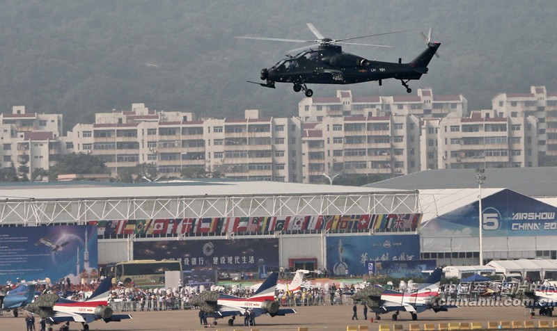 我國(guó)自主研制生產(chǎn)的武直-10武裝直升機(jī)亮相在珠海舉行的第九屆中國(guó)國(guó)際航空航天博覽會(huì),在飛行表演中展示了這款直升機(jī)的優(yōu)良性能。