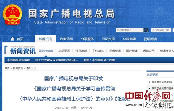 國家廣播電視總局關(guān)于學習宣傳貫徹《中華人民共和國英雄烈士保護法》的意見