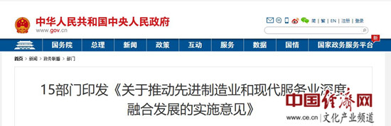 關(guān)于推動(dòng)先進(jìn)制造業(yè)和現(xiàn)代服務(wù)業(yè)深度融合發(fā)展的實(shí)施意見
