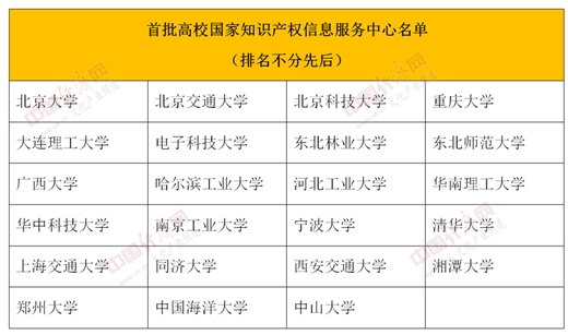據中國經濟網文化產業(yè)頻道記者了解,2019年3月7日,經國家知識產權局辦公室聯合國家教育部辦公廳公布,北京大學等23家高校已入選“首批高校國家知識產權信息服務中心”名單。隨著第二批37家高校的入選,“高校國家知識產權信息服務中心”總體數量增至60家。