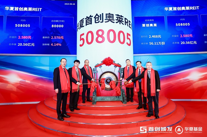 8月28日,首單以奧特萊斯作為底層資產(chǎn)的消費(fèi)REITs——華夏首創(chuàng)奧萊REIT(基金代碼:508005)正式在上交所上市。北京市國有資產(chǎn)監(jiān)督管理委員會、山東省發(fā)展改革委、湖北省發(fā)展改革委、山東省濟(jì)南市歷城區(qū)政府等有關(guān)領(lǐng)導(dǎo),北京首都創(chuàng)業(yè)集團(tuán)有限公司黨委書記、董事長劉永政,中信證券股份有限公司執(zhí)行委員、全球投資銀行管理委員會主任馬堯,華夏基金管理有限公司總經(jīng)理李一梅及托管銀行、合作機(jī)構(gòu)、投資者代表出席基金上市儀式。