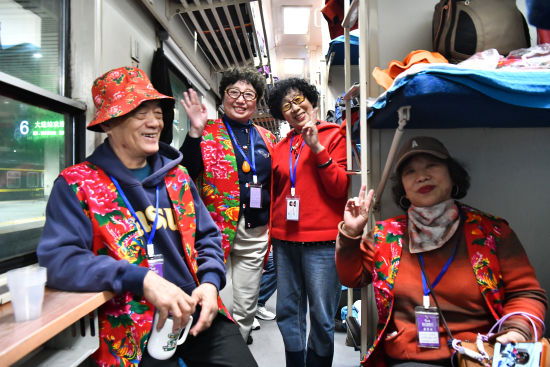 除了行程上更加舒心,專列也升級(jí)了相關(guān)適老服務(wù),全列配備空調(diào)臥鋪車(chē)廂,提供軟臥、硬臥多樣化選擇,全程有專業(yè)領(lǐng)隊(duì)陪同護(hù)航,隨車(chē)備齊應(yīng)急藥品與適老設(shè)施,餐食主打清淡適口、營(yíng)養(yǎng)均衡。此外,專列為旅途期間過(guò)生日的游客精心舉辦專屬生日會(huì),同步組織《聲生不息 舞動(dòng)專列》才藝比拼等豐富文娛活動(dòng),實(shí)現(xiàn)吃、住、行、游、娛一體化閉環(huán)服務(wù),讓老年游客出游更放心、更舒心。