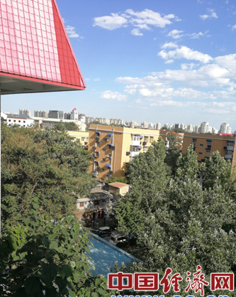 圖為藍條白云下的北京市西城區(qū)白紙坊東街2號。