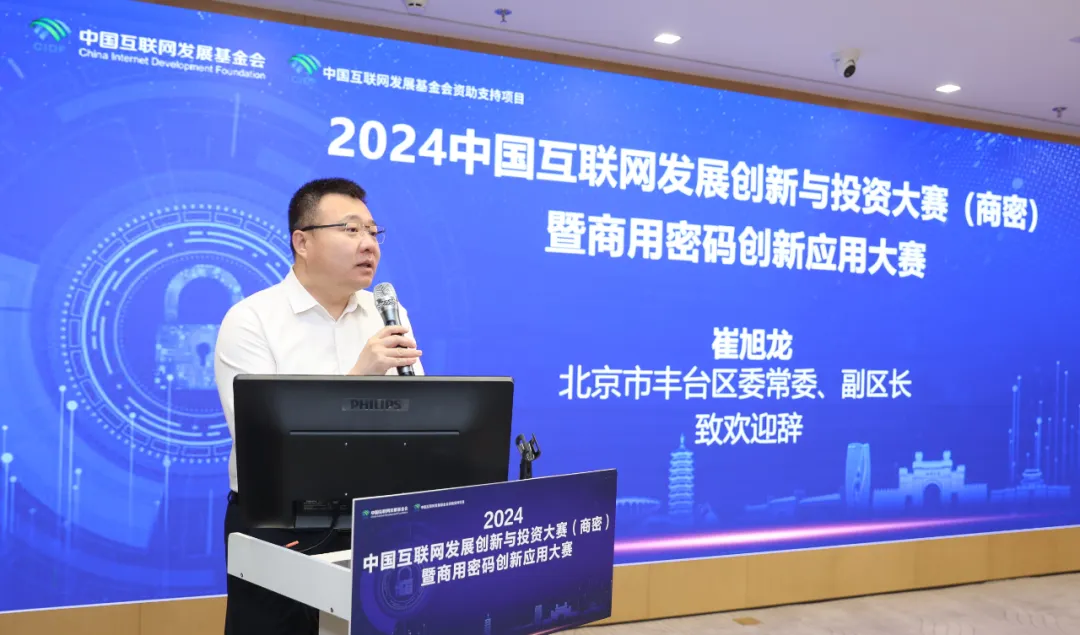 北京市豐臺(tái)區(qū)常委、副區(qū)長崔旭龍致辭,中國互聯(lián)網(wǎng)發(fā)展基金會(huì)、中國互聯(lián)網(wǎng)投資基金、工信部網(wǎng)安中心領(lǐng)導(dǎo)出席觀賽。