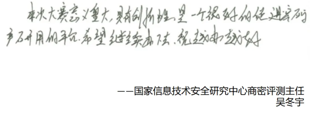 賽后,密碼科技國家工程研究中心研究員秦小龍、中國電力科學(xué)研究院高級工程師李智虎、中國科學(xué)院大學(xué)網(wǎng)絡(luò)空間安全學(xué)院教授/博導(dǎo)王躍武、國家信息技術(shù)安全研究中心商密評測主任吳冬宇等多位專家評委給大賽提出了寶貴的建議和意見。