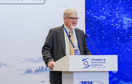 圖為美國(guó)信息產(chǎn)業(yè)機(jī)構(gòu)北京辦事處總裁繆萬德在“互聯(lián)網(wǎng)企業(yè)家論壇”上發(fā)言。(大會(huì)供圖)