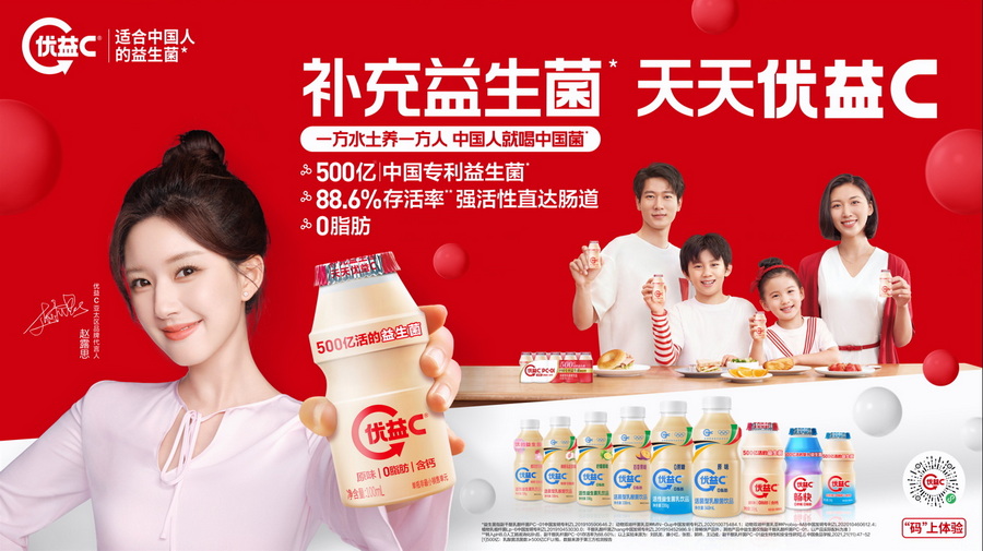 優(yōu)益C “適合中國(guó)人的益生菌”,連續(xù)四年品牌力行業(yè)第一。優(yōu)益C全線產(chǎn)品使用中國(guó)專利益生菌PC-01, 斬獲第二十四屆中國(guó)專利銀獎(jiǎng)及2023年度國(guó)家科學(xué)技術(shù)進(jìn)步獎(jiǎng)二等獎(jiǎng),是目前乳業(yè)在專利領(lǐng)域唯一且最高榮譽(yù)。優(yōu)益C 100ml暢快新品行業(yè)首創(chuàng)的5株復(fù)合中國(guó)益生菌,上市后好評(píng)席卷各大平臺(tái)。通過(guò)分眾媒體曝光、小優(yōu)尋菌之路主題營(yíng)銷、大優(yōu)奧運(yùn)主題營(yíng)銷拉近與消費(fèi)者的距離,“一方水土養(yǎng)一方人,中國(guó)人就補(bǔ)中國(guó)益生菌”的概念深入人心,備受消費(fèi)者喜愛。