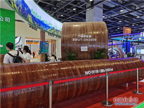 一家企業(yè)展示的竹纏繞復合材料管廊。竹纏繞復合材料低碳節(jié)能,兼具減碳、固碳、儲碳功能。