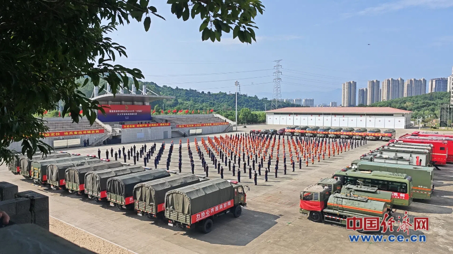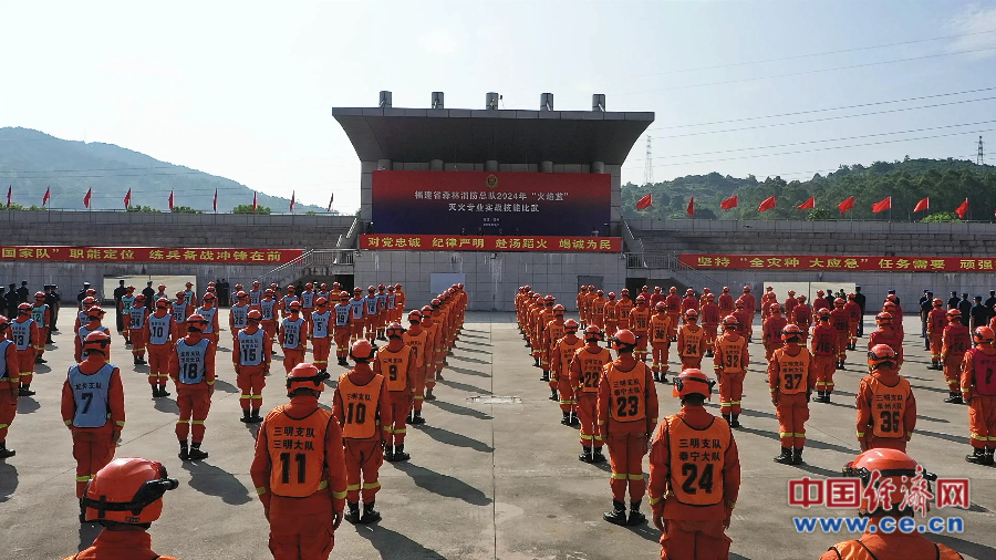 福建省森林消防總隊2024年“火焰藍”滅火專業(yè)實戰(zhàn)技能比武開幕式現場。 蔡增欣/攝