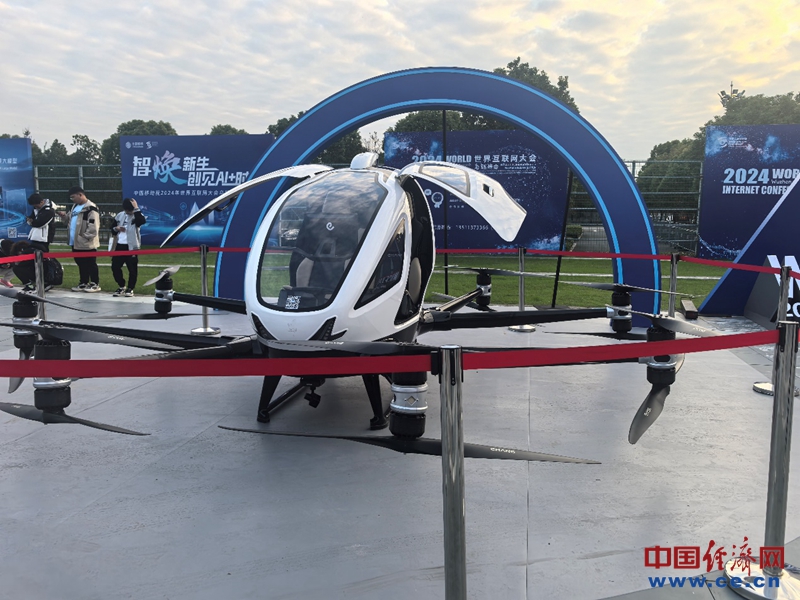 億航-216載人飛行器為提供低空中短途交通運(yùn)輸解決方案。中國經(jīng)濟(jì)網(wǎng)記者郭文培攝