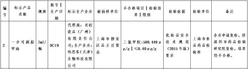 經(jīng)濟日報-中國經(jīng)濟網(wǎng)9月25日訊(記者 韓璐) 上海市藥品監(jiān)督管理局23日發(fā)布的抽檢公告顯示,由名創(chuàng)優(yōu)品(廣州)有限責(zé)任公司代理的指甲油添加禁用物質(zhì)三氯甲烷,并且經(jīng)企業(yè)申請復(fù)檢后結(jié)果仍不合格。 檢驗結(jié)果顯示,該產(chǎn)品中三氯甲烷的含量高達(dá)589.449μg/g,相比《化妝品安全技術(shù)規(guī)范》(2015年版)中規(guī)定的檢測限值超標(biāo)1400多倍。