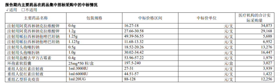 據(jù)其《2020年年度報(bào)告》,2020年內(nèi),華北制藥集采主要中標(biāo)產(chǎn)品還有注射用阿莫西林鈉克拉維酸鉀、注射用哌拉西林鈉他唑巴坦鈉、注射用頭孢噻肟鈉、注射用鹽酸去甲萬古霉素、環(huán)孢素軟膠囊、重組乙型肝炎疫苗等。不過,上述產(chǎn)品供應(yīng)如何,華北制藥在其回應(yīng)中尚未說明。