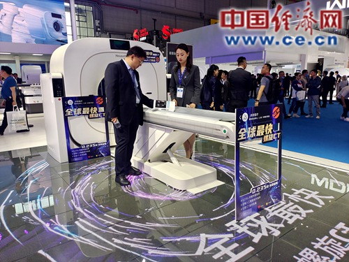 第87屆中國(guó)國(guó)際醫(yī)療器械博覽會(huì)在上海舉行,圖為東軟醫(yī)療展臺(tái)。 中國(guó)經(jīng)濟(jì)網(wǎng)記者郭文培攝