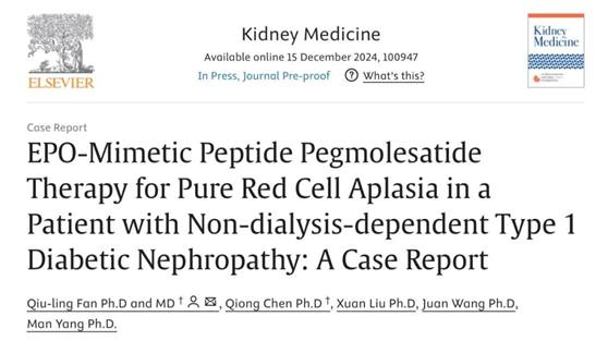 近日,美國(guó)腎臟基金會(huì)(NKF)官方期刊《腎臟醫(yī)學(xué)》(Kidney Medicine)發(fā)表了由上海交通大學(xué)醫(yī)學(xué)院附屬第一人民醫(yī)院腎內(nèi)科范秋靈教授主導(dǎo)研究的一篇有關(guān)促紅細(xì)胞生成素(EPO)模擬肽——培莫沙肽(商品名:圣羅萊)的病例報(bào)告。該報(bào)告首次顯示了培莫沙肽能夠有效治療EPO誘導(dǎo)的純紅細(xì)胞再生障礙性貧血(PRCA)患者,且安全性良好,為這種罕見但嚴(yán)重的并發(fā)癥提供了一種頗具前景的創(chuàng)新解決方案。