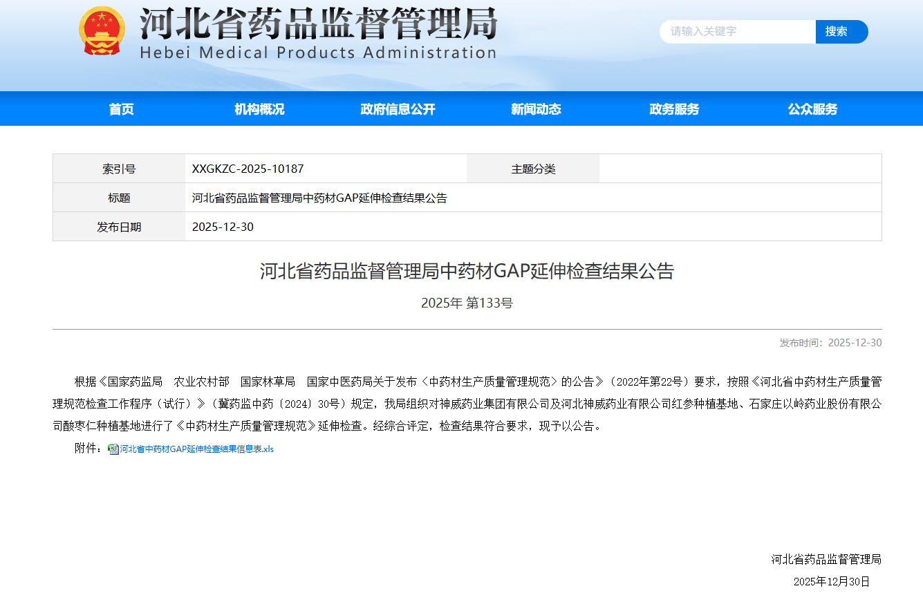 河北省藥品監(jiān)督管理局日前發(fā)布《河北省藥品監(jiān)督管理局中藥材GAP延伸檢查結(jié)果公告》,以嶺藥業(yè)酸棗仁種植基地通過河北省藥監(jiān)局組織的GAP延伸檢查,綜合評定符合要求。這是全國第一個通過GAP延伸檢查的酸棗仁基地。