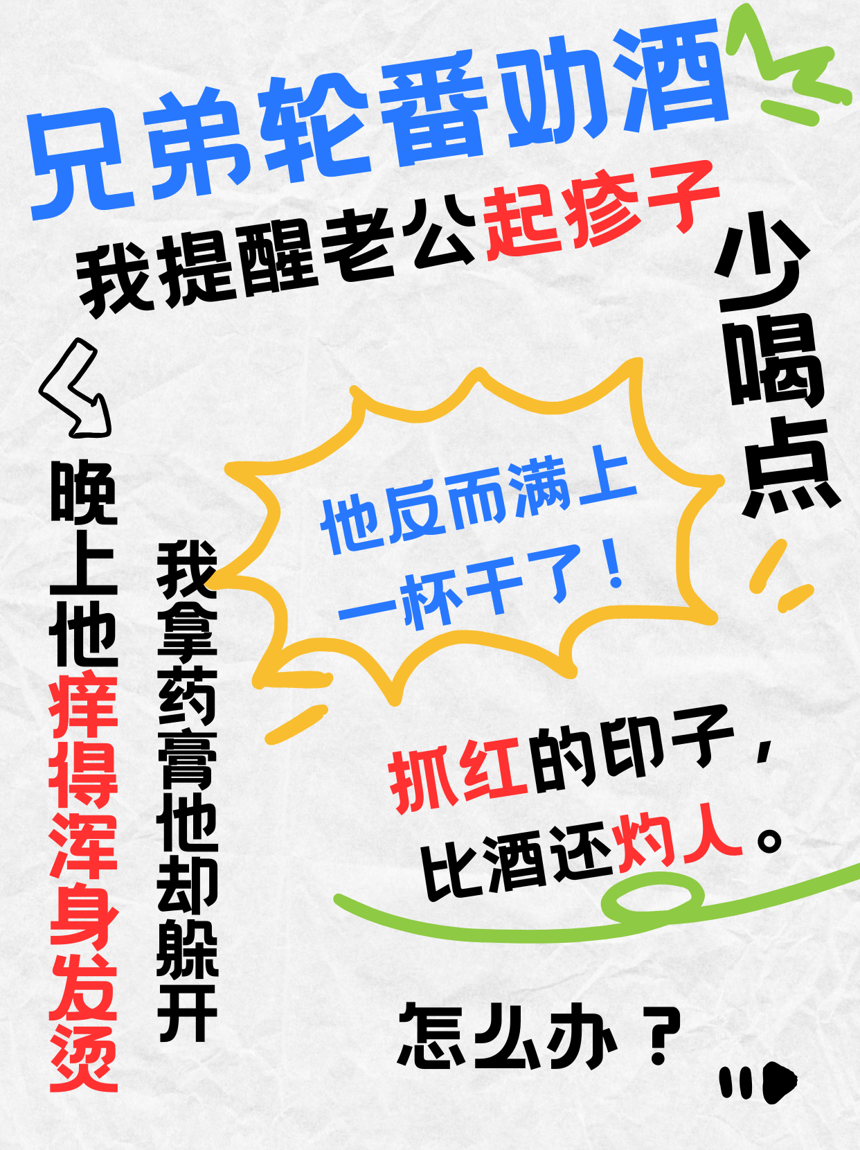 兄弟輪番勸酒,我提醒老公起疹子少喝點。