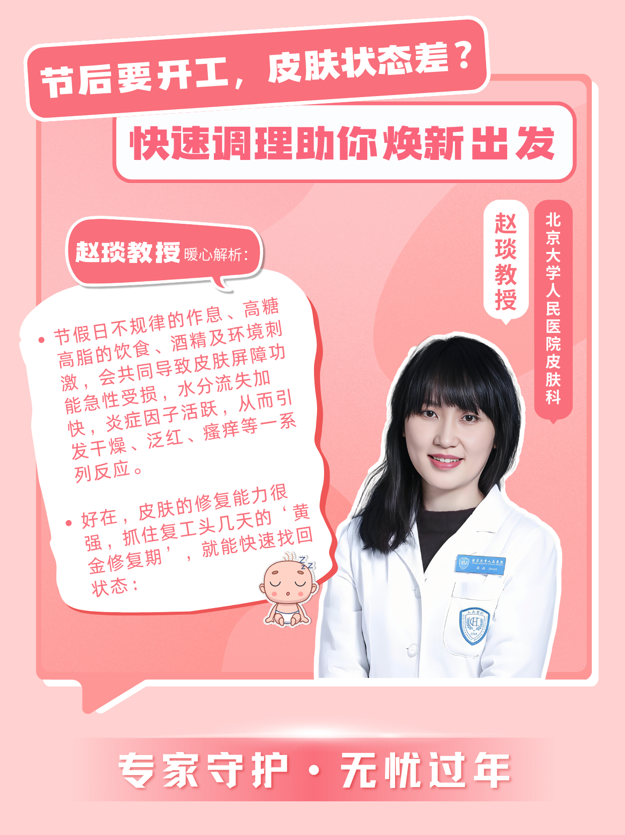 “節(jié)假日勞累、作息紊亂確實容易誘發(fā)或加重特應(yīng)性皮炎癥狀,這與免疫狀態(tài)波動及皮膚屏障功能暫時下降有關(guān)。別著急,年初一的‘面子工程’可以快速補救,記住三個關(guān)鍵步驟: