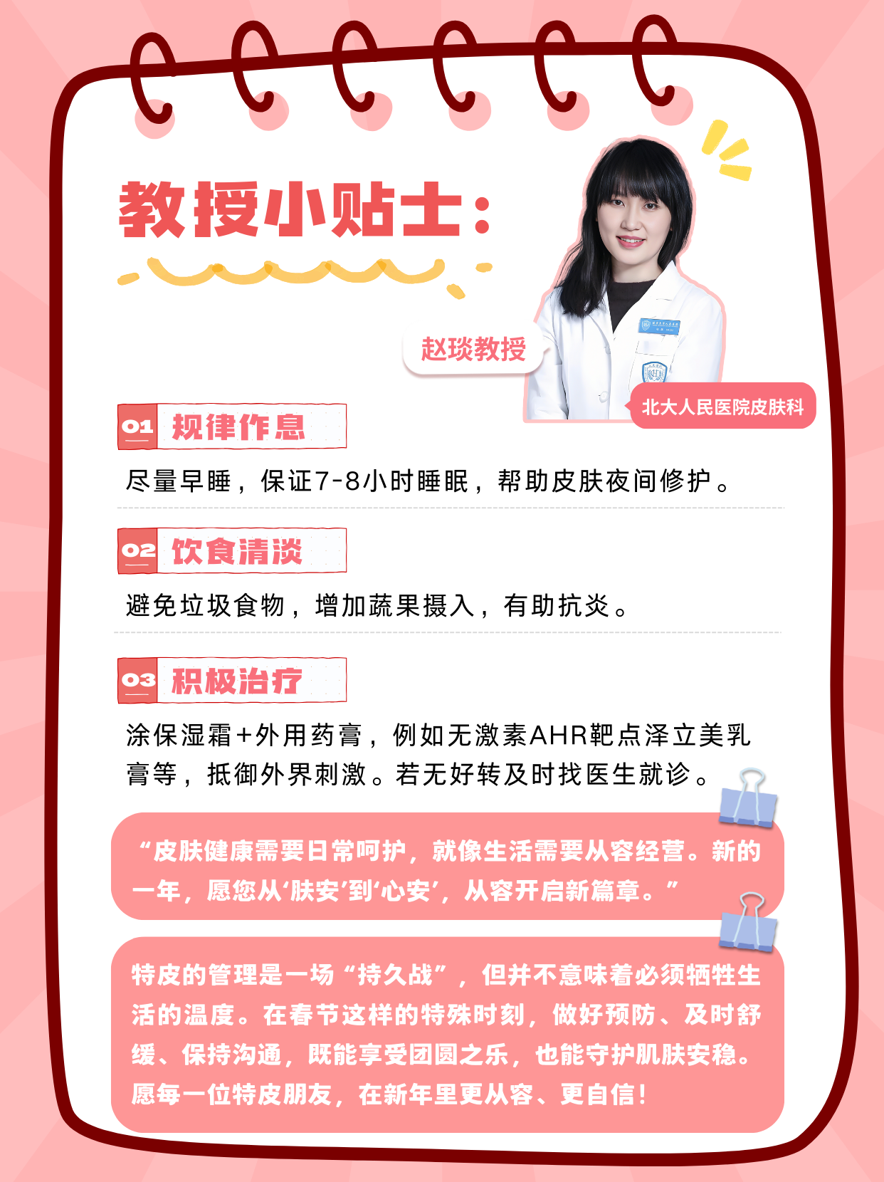 特皮的管理是一場“持久戰(zhàn)”,但并不意味著必須犧牲生活的溫度。在春節(jié)這樣的特殊時刻,做好預(yù)防、及時舒緩、保持溝通,既能享受團(tuán)圓之樂,也能守護(hù)肌膚安穩(wěn)。愿每一位特皮朋友,在新年里更從容、更自信!