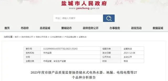 2023年度鹽城市市場監(jiān)督管理局委托南京市產(chǎn)品質(zhì)量監(jiān)督檢驗院(南京市質(zhì)量發(fā)展與先進技術(shù)應(yīng)用研究院)組織實施家用燃氣具產(chǎn)品市級監(jiān)督抽查。本次抽查計劃10批次,抽到10批次,經(jīng)檢驗合格10批次。