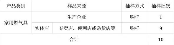 表1 家用燃氣具樣品來源