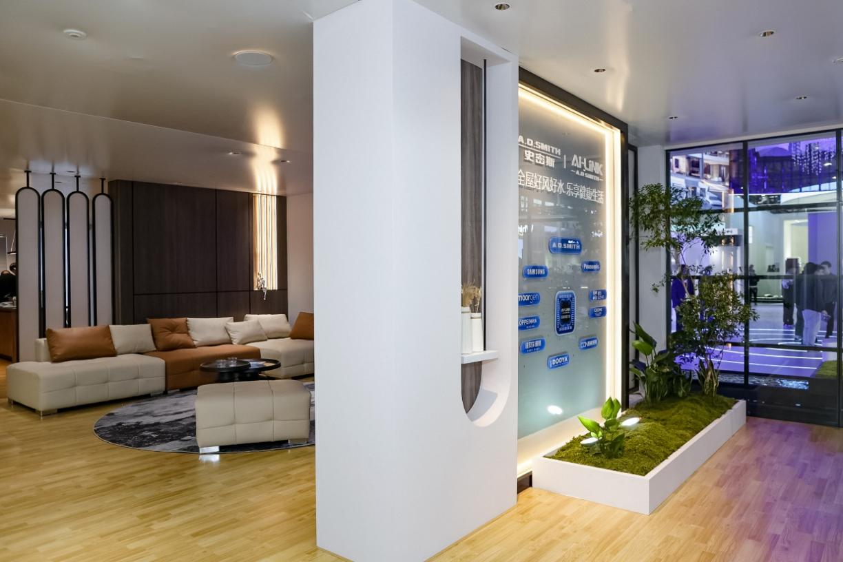 在本次AWE上,A.O.史密斯打造了一套沉浸式的智能生活體驗間,通過部署“智慧五恒系統(tǒng)”,讓恒溫、恒濕、恒氧、恒潔、恒靜的“好風(fēng)”流動在家的每個角落,冷熱宜人、微風(fēng)正好、不干不燥、靜謐舒爽。A.O.史密斯AI-LiNK五恒系統(tǒng),告別了空調(diào)和新風(fēng)各自運(yùn)行、井水不犯河水的模式,通過中央空氣處理機(jī)組,外加冷熱一體的“天風(fēng)地水”輻射系統(tǒng),大大縮小風(fēng)管管徑,滿足中國房屋穿梁打孔的便利需求,實(shí)現(xiàn)中央空氣調(diào)節(jié)的智能交互效果,節(jié)能高效,并解決了傳統(tǒng)家居中各區(qū)域、各高度的溫差問題,真正實(shí)現(xiàn)了全屋360度立體空間的五恒好風(fēng)。此外,還通過微正壓環(huán)境,讓灰塵、二氧化碳、甲醛等室內(nèi)空氣污染物不斷稀釋排出,確保室內(nèi)干凈宜人、富氧舒適;系統(tǒng)智能靜音運(yùn)行。