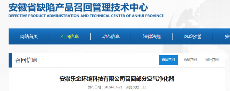 消費(fèi)者可通過安徽樂金環(huán)境科技有限公司客戶服務(wù)熱線(17856699568)進(jìn)一步了解具體信息。此外,也可登錄安徽省缺陷產(chǎn)品召回管理技術(shù)中心網(wǎng)站http://www.ahdpract.com了解更多信息,反映缺陷線索。