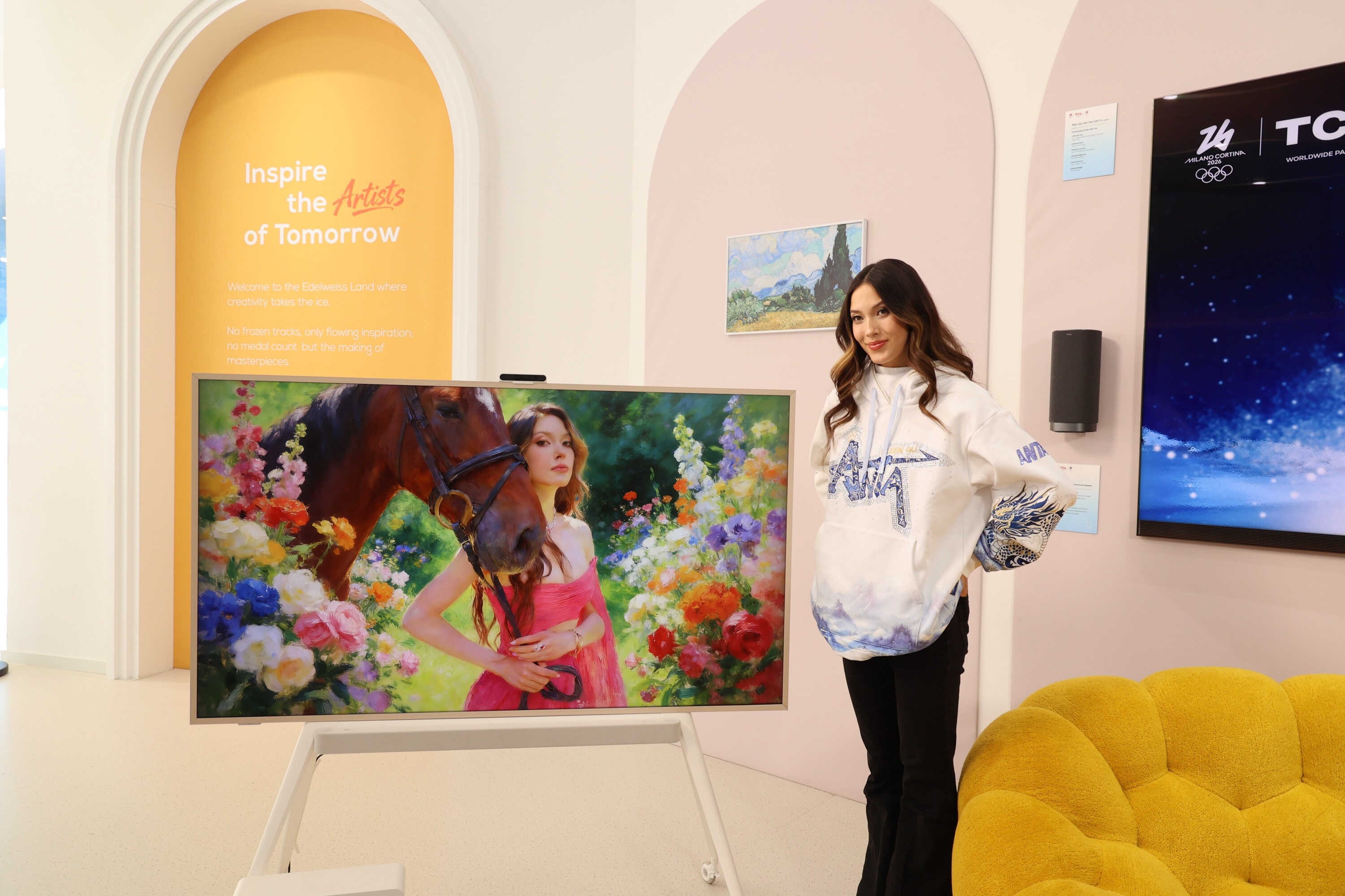 當(dāng)?shù)貢r間2月23日,TCL全球品牌代言人谷愛凌參觀TCL“雪絨奇境”米蘭冬奧主題展館,并與現(xiàn)場粉絲和媒體互動。值得注意的是,這是谷愛凌本屆冬奧會后首次亮相,也是她在本屆冬奧會賽后參與的唯一一場媒體粉絲互動活動。