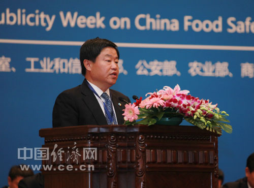 中糧集團(tuán)董事長寧高寧在第三屆中國食品安全論壇上致辭 中國經(jīng)濟(jì)網(wǎng)王維亮攝