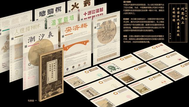 該系列紀念封由張泮儉、張慶鋒設(shè)計,風格整體統(tǒng)一又有特色,兼具科學與藝術(shù)之美,既能感受到傳統(tǒng)文化的古香古色,又在設(shè)計和制作上大膽創(chuàng)新。每類郵戳對照中國傳統(tǒng)色色譜進行色系標注,顏色有所區(qū)別。紀念封配有精美封套,通過主圖、郵戳、個性化郵票直觀表現(xiàn)科技成果,同時在封里增加了一張設(shè)計精良的三折插頁卡片——頁式“說明書”,掃描封上二維碼,還可以觀看動畫短片,參與互動游戲。