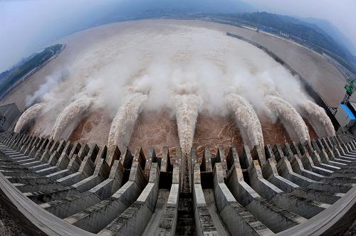 2008年8月13日,長江入汛以來的最大一次洪水順利通過三峽工程向中下游推進,中下游水位持續(xù)上漲,三峽工程運行正常。2009年汛期,三峽水庫的防洪庫容已達146億立方米,開始發(fā)揮攔洪調峰和枯水期給下游補水的功能,下游荊江河段防洪標準已從十年一遇提高到了近百年一遇,長江中下游的防洪體系初步形成。新華社記者杜華舉攝
