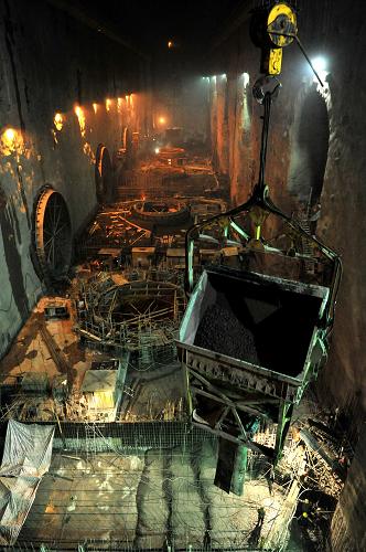 正在建設中的三峽工程地下電站內景(2009年3月26日攝)。目前,三峽工程的樞紐和輸變電工程已基本完工,運行平穩(wěn),綜合效益日益顯現(xiàn)。2009年6月30日,三峽電站26臺機組首次實現(xiàn)全部同時并網(wǎng)發(fā)電。