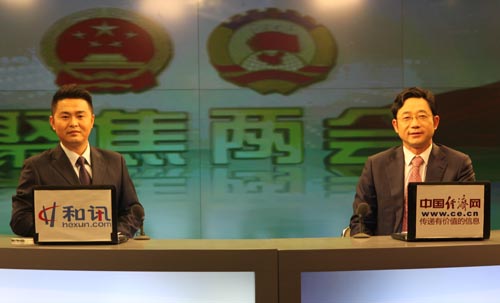 全國(guó)人大代表,江蘇悅達(dá)集團(tuán)有限公司董事、總裁邵勇做客“中經(jīng)在線訪談” 攝影/裴小閣