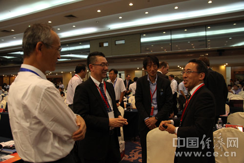 由中國(guó)道路交通安全協(xié)會(huì)、中國(guó)汽車(chē)技術(shù)研究中心和中國(guó)經(jīng)濟(jì)網(wǎng)共同主辦的“2013中國(guó)道路交通安全論壇”于8月29日在北京首都大酒店舉行。圖為日產(chǎn)汽車(chē)株式會(huì)社企劃·先行技術(shù)開(kāi)發(fā)本部部長(zhǎng)高橋信彥(右)與參會(huì)嘉賓進(jìn)行交流。中國(guó)經(jīng)濟(jì)網(wǎng) 裴小閣 攝影