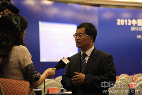 由中國道路交通安全協(xié)會、中國汽車技術研究中心和中國經(jīng)濟網(wǎng)共同主辦的“2013中國道路交通安全論壇”于8月29日在北京首都大酒店舉行。圖為清華大學交通研究所所長陸化普接受央視記者采訪。中國經(jīng)濟網(wǎng) 裴小閣 攝影