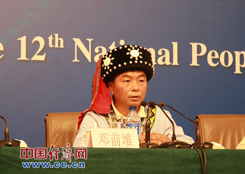 3月10日(星期日)15:00,在梅地亞中心多功能廳舉行“一線工人農(nóng)民代表談履職”為主題的記者會(huì),邀請(qǐng)六位代表就相關(guān)問題回答中外記者提問。圖為云南省怒江州福貢縣石月亮鄉(xiāng)拉馬底村鄉(xiāng)村醫(yī)生鄧前堆。中國(guó)經(jīng)濟(jì)網(wǎng)記者劉瀟瀟/攝