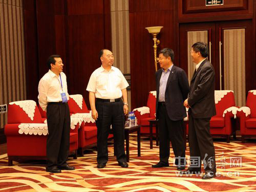 2013年全國食品安全宣傳周啟動儀式暨第五屆中國食品安全論壇6月17日在北京舉辦,今年主題為“社會共治 同心攜手維護(hù)食品安全”。圖為論壇嘉賓中糧集團(tuán)董事長寧高寧(右二)與經(jīng)濟(jì)日報社社長徐如俊,經(jīng)濟(jì)日報社副總編輯丁士,中國經(jīng)濟(jì)網(wǎng)總裁王旭東交流。 中國經(jīng)濟(jì)網(wǎng) 王耀峰/攝